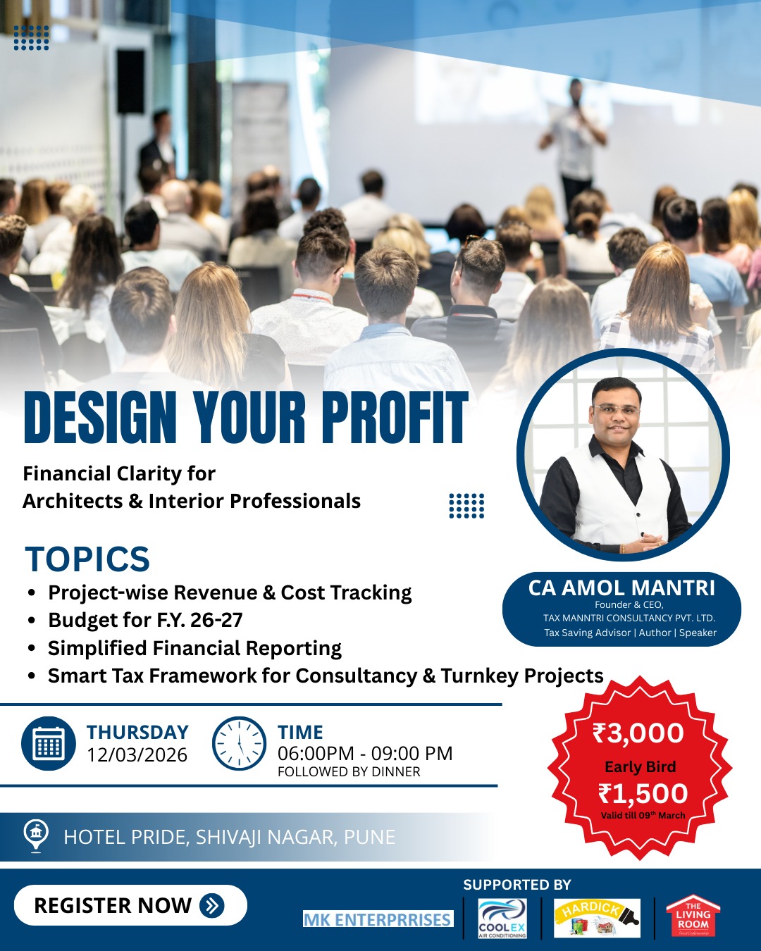 Are you an Architect or Interior Professional looking to increase profits, manage project finances better, and build a tax-efficient business framework for F.Y. 26–27?