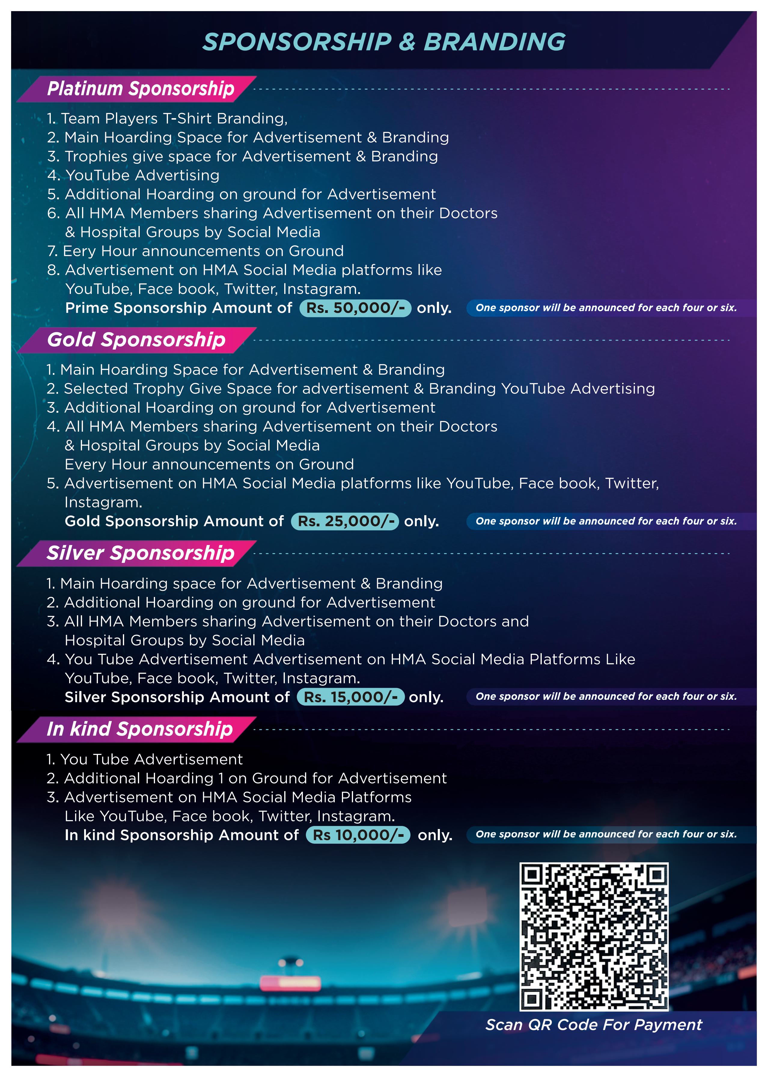 Main and additional hoardings, selected trophy branding, YouTube advertising, hourly announcements, and promotion across HMA doctors’ and hospital social media groups.