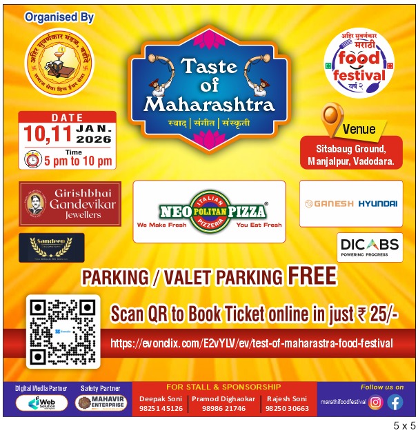 Experience the rich flavours, vibrant culture, and festive spirit of Maharashtra—right here in Vadodara!